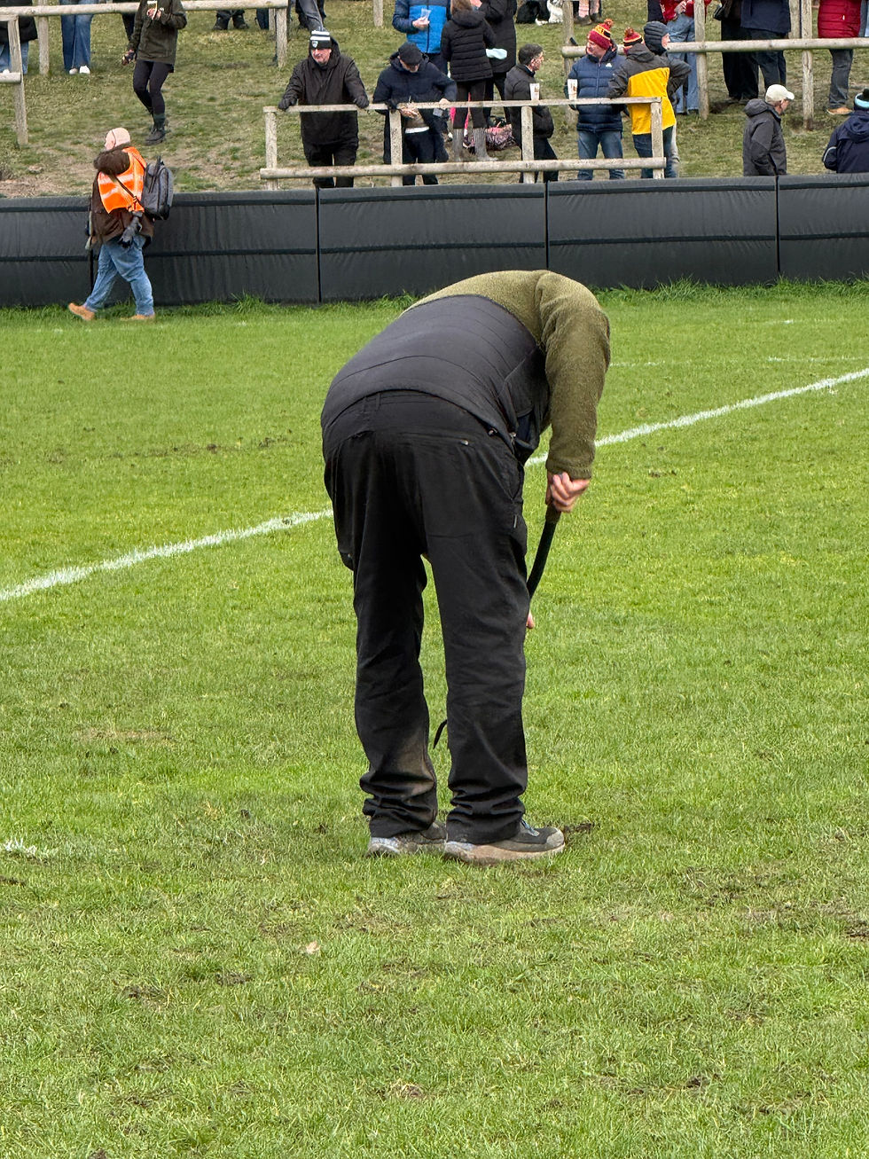 Away from the club house, there's very little about the ground that is spectator friendly with no seats (other than a couple of wooden benches) or even covered areas to provide some shelter from the elements. I'm not sure I'll be wanting to make the visit over there in a few years time with the sloped standing area potentially very slippy and with an uneven surface that is likely to be my undoing when doubtless on a couple of sticks and struggling for breath.